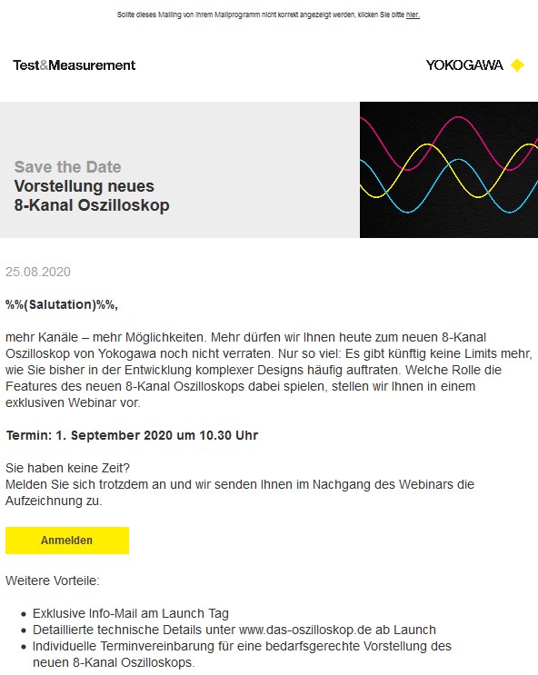 The company Yokogawa is the leader in precise electronic and optical metrology. They offer a wide range for research and development of all industry branches.