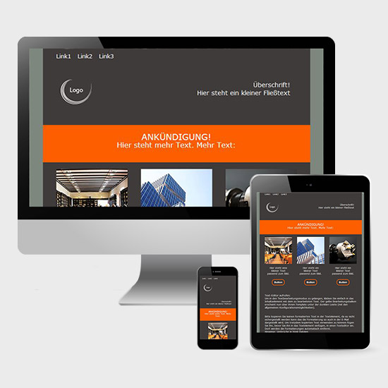 Tous les modèles sont responsive et s'adaptent donc automatiquement à tous les appareils. Ils sont créés en quelques clics dans l'éditeur de modèles GTC (disponible gratuitement pour vous en tant que client GTC dans votre espace client protégé). Il est possible de télécharger des graphiques, de définir des blocs de texte et des couleurs et de saisir des textes.
