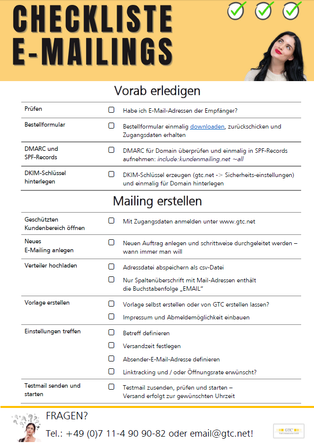 Dann kann es losgehen mit Ihren E-Mailings! Was es hier zu beachten gibt, haben wir Ihnen in unserer kleinen Checkliste zusammengefasst.